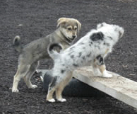 Im Kurs können die Welpen während des ausgiebigen Spielens (auf einem eingezäunten Gelände) durch kontrollierten Kontakt zu gleichaltrigen Artgenossen ein gutes Sozialverhalten entwickeln, üben viele Ausdrucksweisen der Körpersprache und erlernen die wichtige Beißhemmung.  |